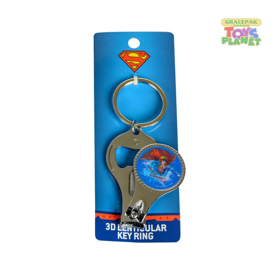Handy dual function key ring with a nail clipper from finger and toe nails as well as bottle opener. Outdoor multi-function 2 in 1 mini tool Superman Keyring Nail Cutter and Bottle Opener for Superman Super hero fans